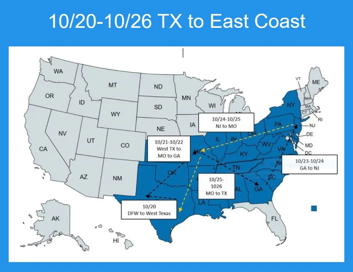 We are headed to the east coast and could hit any of the highlighted states! Let us know if your pet needs a ride!